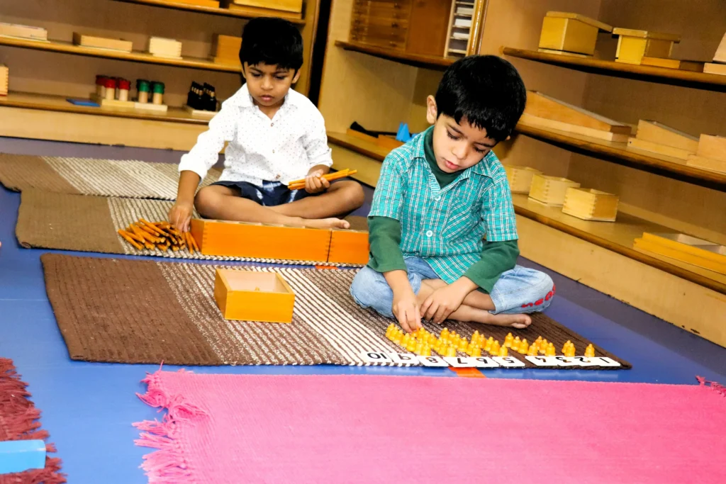 Mathematics activities in the Montessori method are thoughtfully crafted to make abstract concepts tangible, allowing children to understand mathematical principles through hands-on experience. Using materials like number rods, beads, and sandpaper numerals, children explore numbers, quantities, and mathematical operations in a way that builds a concrete understanding. This approach not only enhances their grasp of numbers but also fosters problem-solving skills, logical thinking, and a true appreciation for the beauty of mathematics. Montessori math activities empower children to approach math with confidence, curiosity, and joy, establishing a strong foundation for future learning.