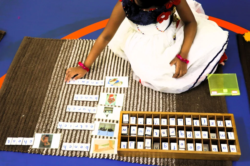 Language activities in the Montessori method are designed to nurture a child’s natural love for words and communication. Through materials like sandpaper letters, movable alphabets, and storytelling, children explore sounds, symbols, and language structure in a tactile and engaging way. These activities build foundational skills in listening, speaking, reading, and writing, allowing children to express themselves confidently and creatively. By immersing children in a language-rich environment, Montessori language activities lay the groundwork for literacy, critical thinking, and effective communication, empowering them to connect with others and the world around them.