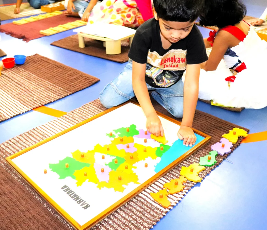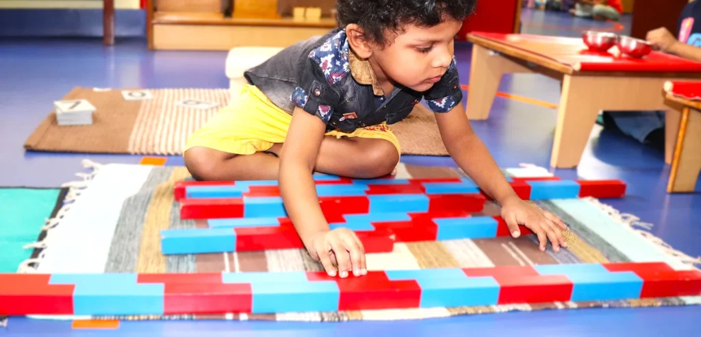 Mathematics activities in the Montessori method are thoughtfully crafted to make abstract concepts tangible, allowing children to understand mathematical principles through hands-on experience. Using materials like number rods, beads, and sandpaper numerals, children explore numbers, quantities, and mathematical operations in a way that builds a concrete understanding. This approach not only enhances their grasp of numbers but also fosters problem-solving skills, logical thinking, and a true appreciation for the beauty of mathematics. Montessori math activities empower children to approach math with confidence, curiosity, and joy, establishing a strong foundation for future learning.