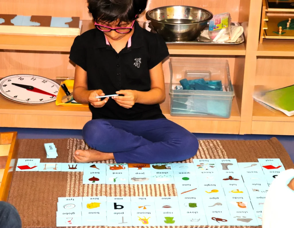 Reading is taught phonetically. “Phonetic” means by sound and the Montessori reading program is based on the sounds, as opposed to the names associated with the alphabet. Children listen to the sound, see the shapes and with the help of tracing, train the muscles needed for writing. They are then ready to spell simple words and eventually cultivate writing skills.