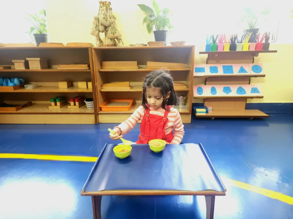 Exercises of Practical Life (EPL) activities in the Montessori method aim to equip children with essential life skills that foster independence, coordination, concentration, and a sense of responsibility. Through tasks like pouring, buttoning, sweeping, and arranging, children learn how to care for themselves, others, and their environment in a structured and purposeful way. These hands-on activities are designed to mirror real-life tasks, allowing children to develop fine and gross motor skills while building confidence and self-discipline. The mastery of EPL activities forms a strong foundation, empowering children to take on more complex learning experiences with focus and a sense of achievement.